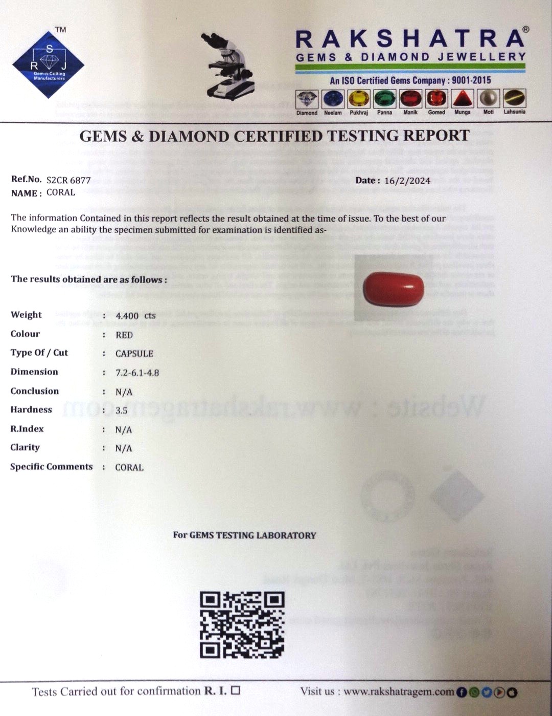 | WEIGHT: | 4.40 CTS |