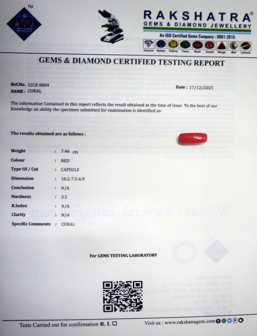 | WEIGHT: | 7.46 CTS |