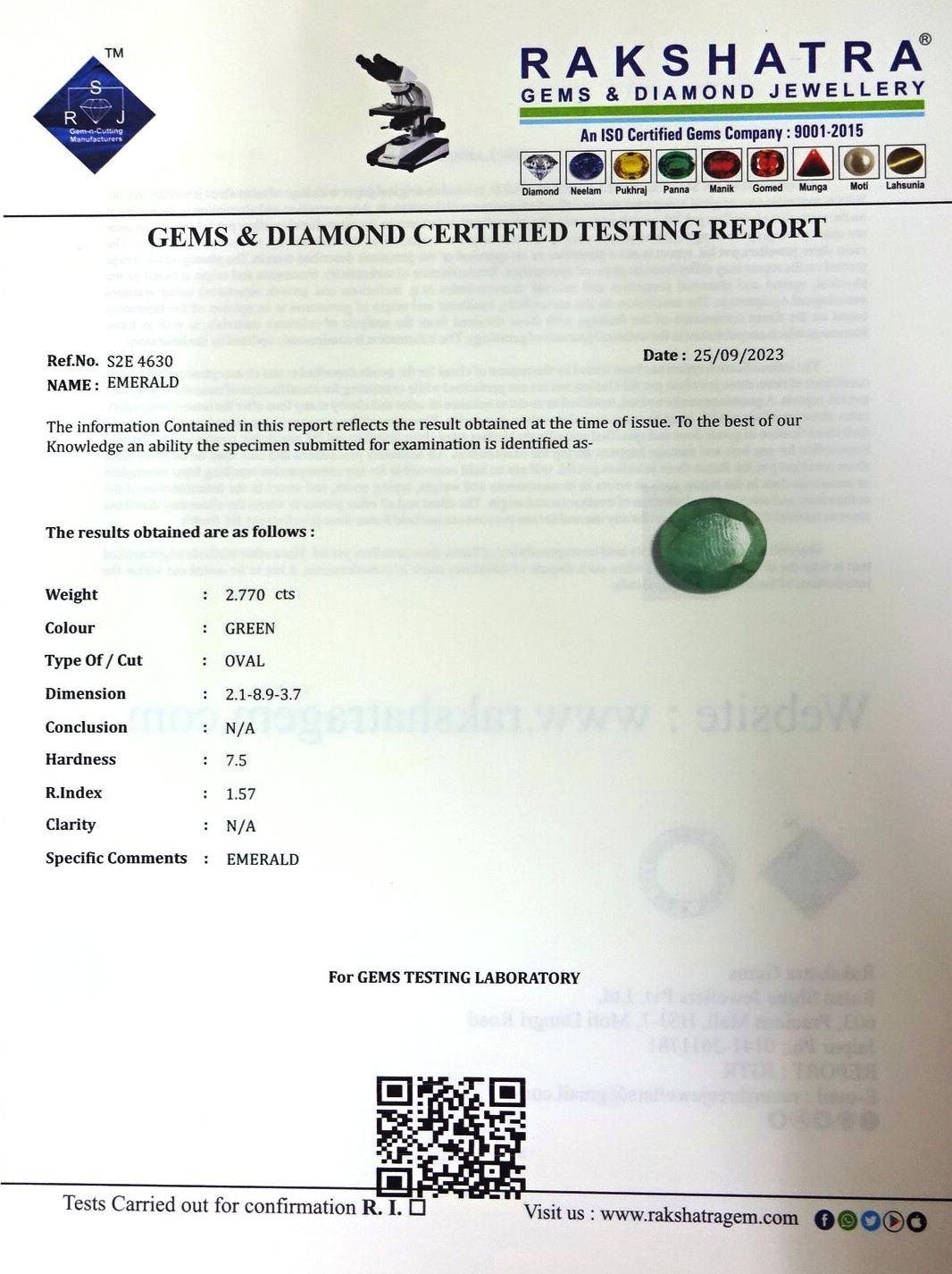 | WEIGHT: | 2.77 CTS |