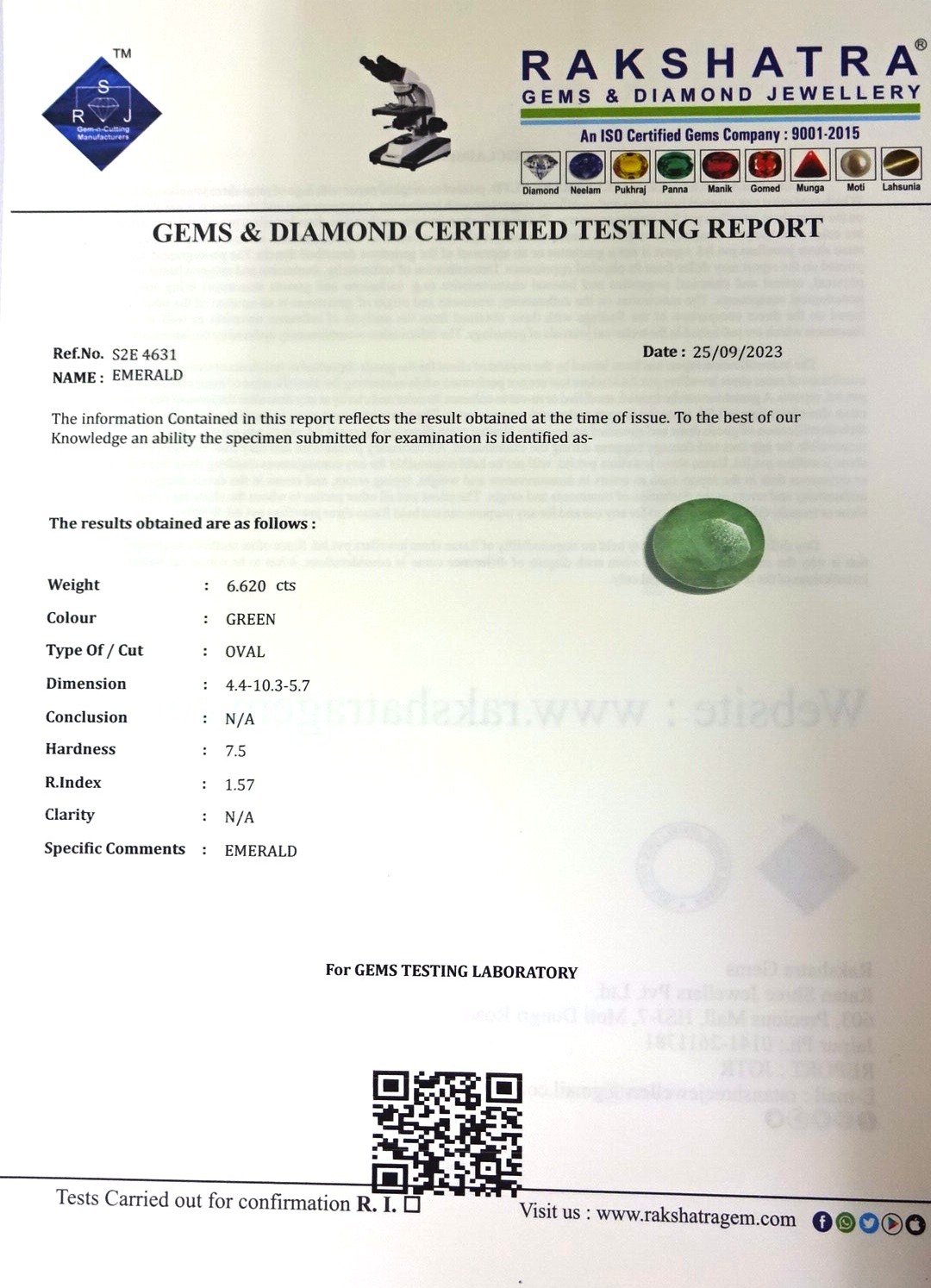 | WEIGHT: | 6.62 CTS |