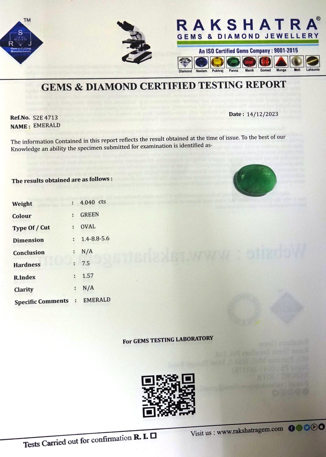 | WEIGHT: | 4.04 CTS |