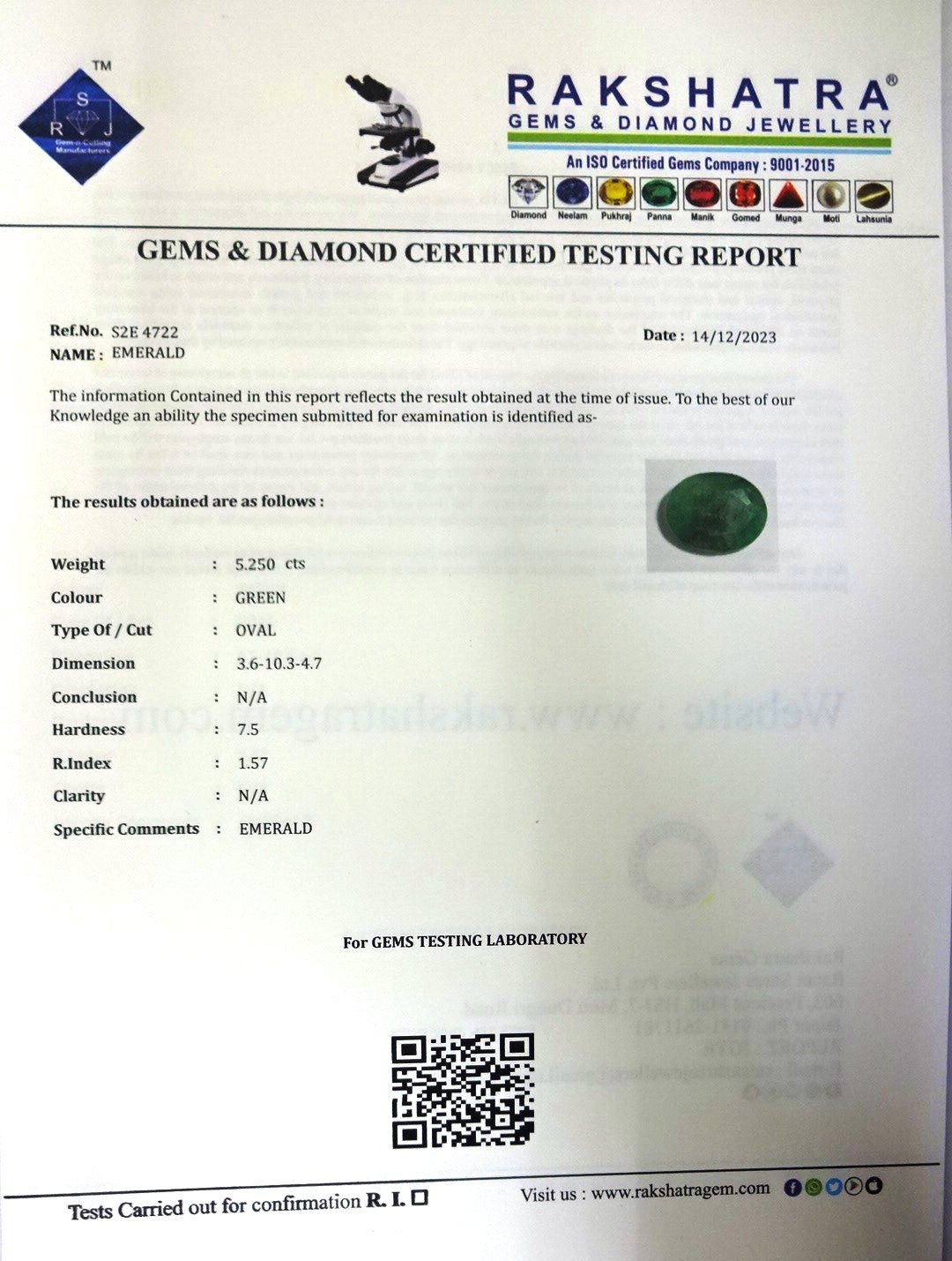| WEIGHT: | 5.25 CTS |