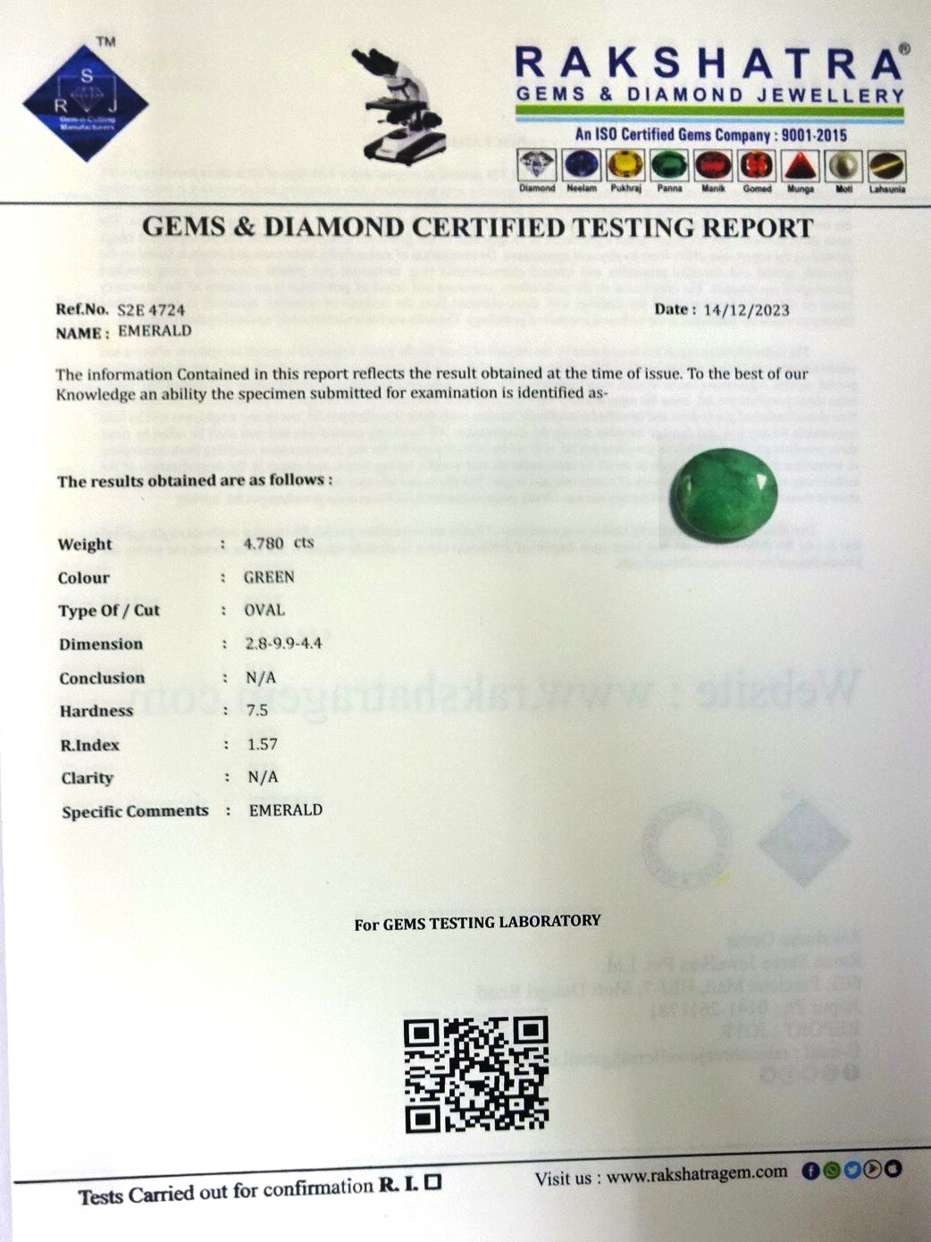 | WEIGHT: | 4.78 CTS |