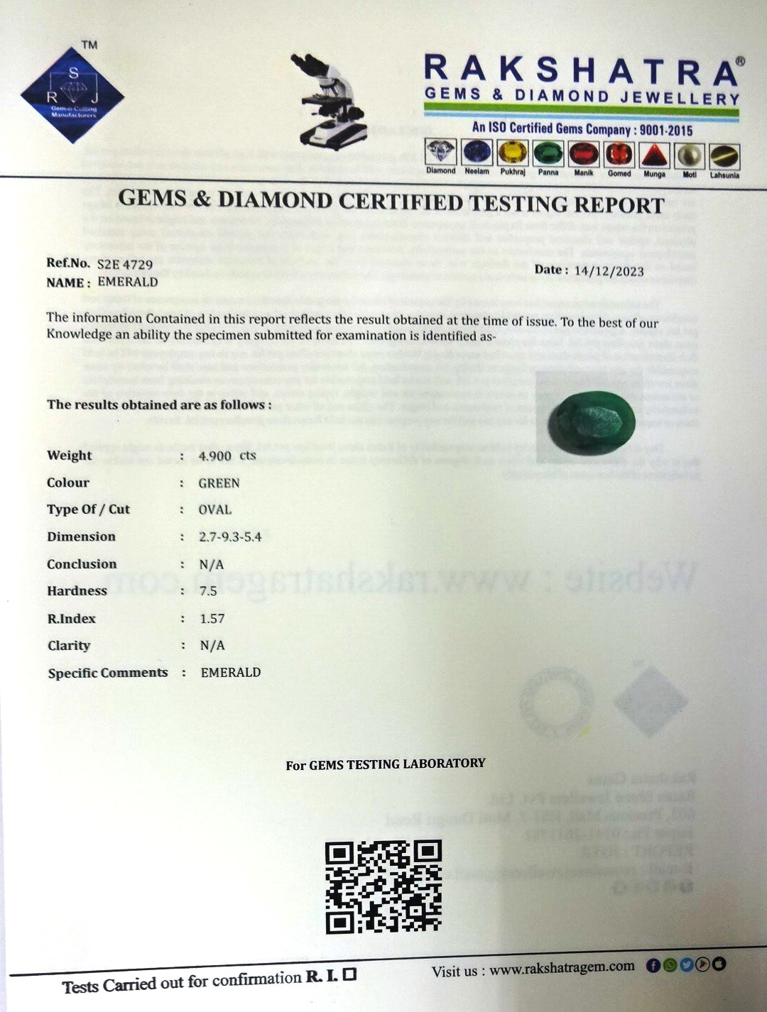 | WEIGHT: | 4.90 CTS |