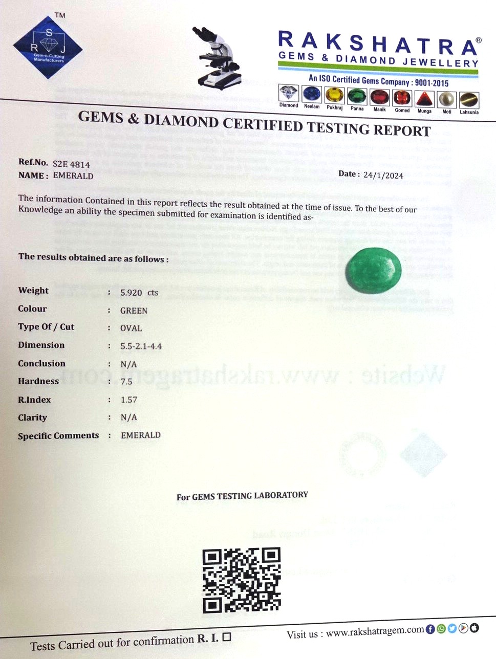 | WEIGHT: | 5.92 CTS |