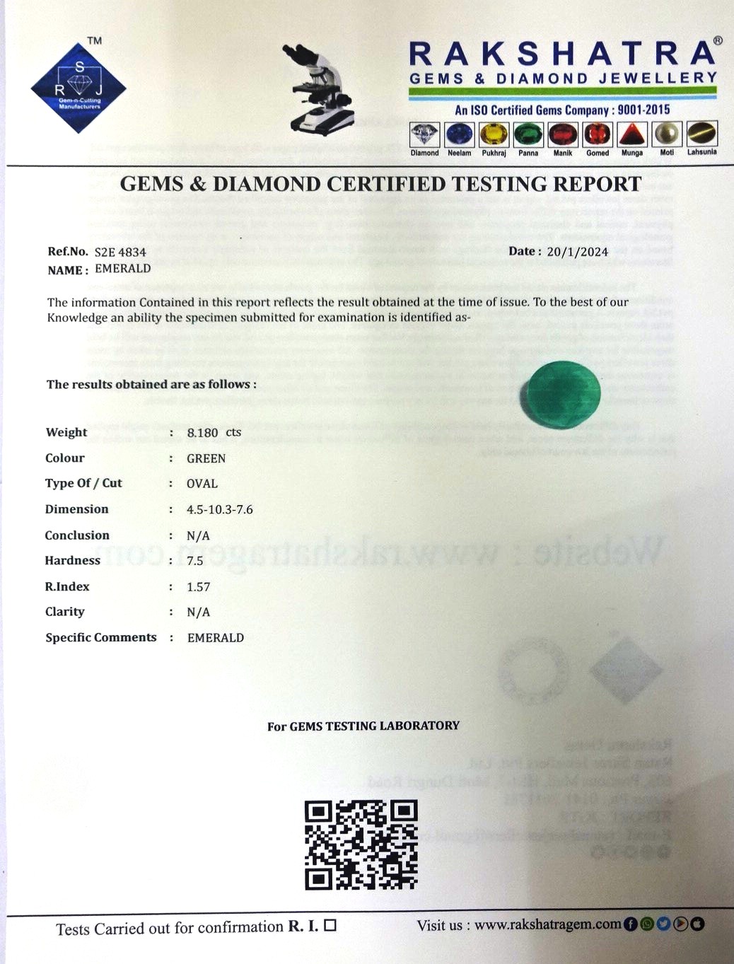 | SPECIFIC COMMENTS: | EMERALD |