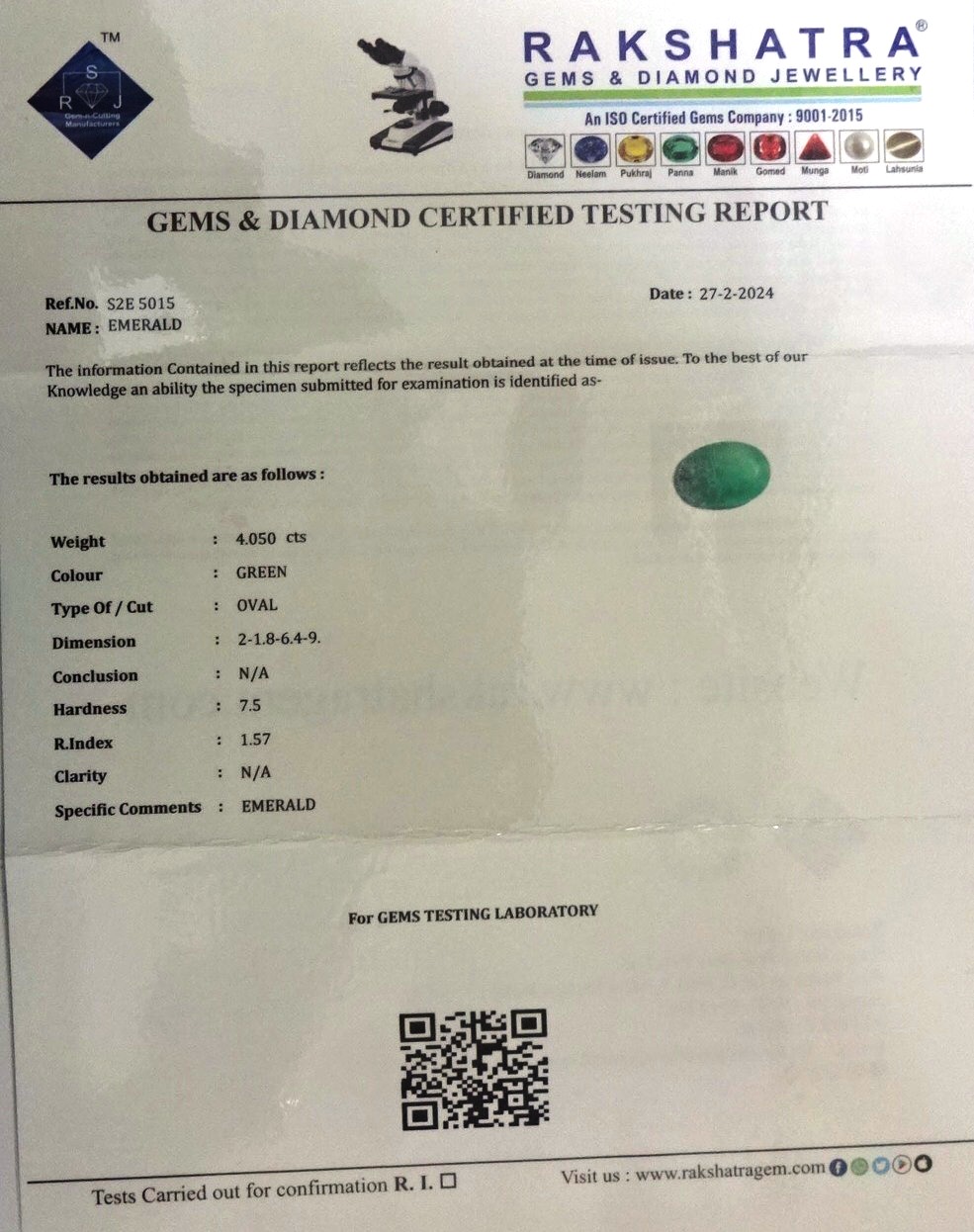 | WEIGHT: | 4.05 CTS |