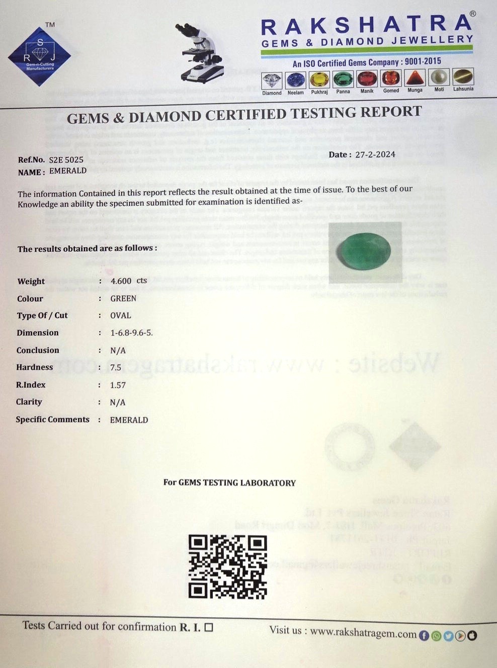 | WEIGHT: | 4.60 CTS |