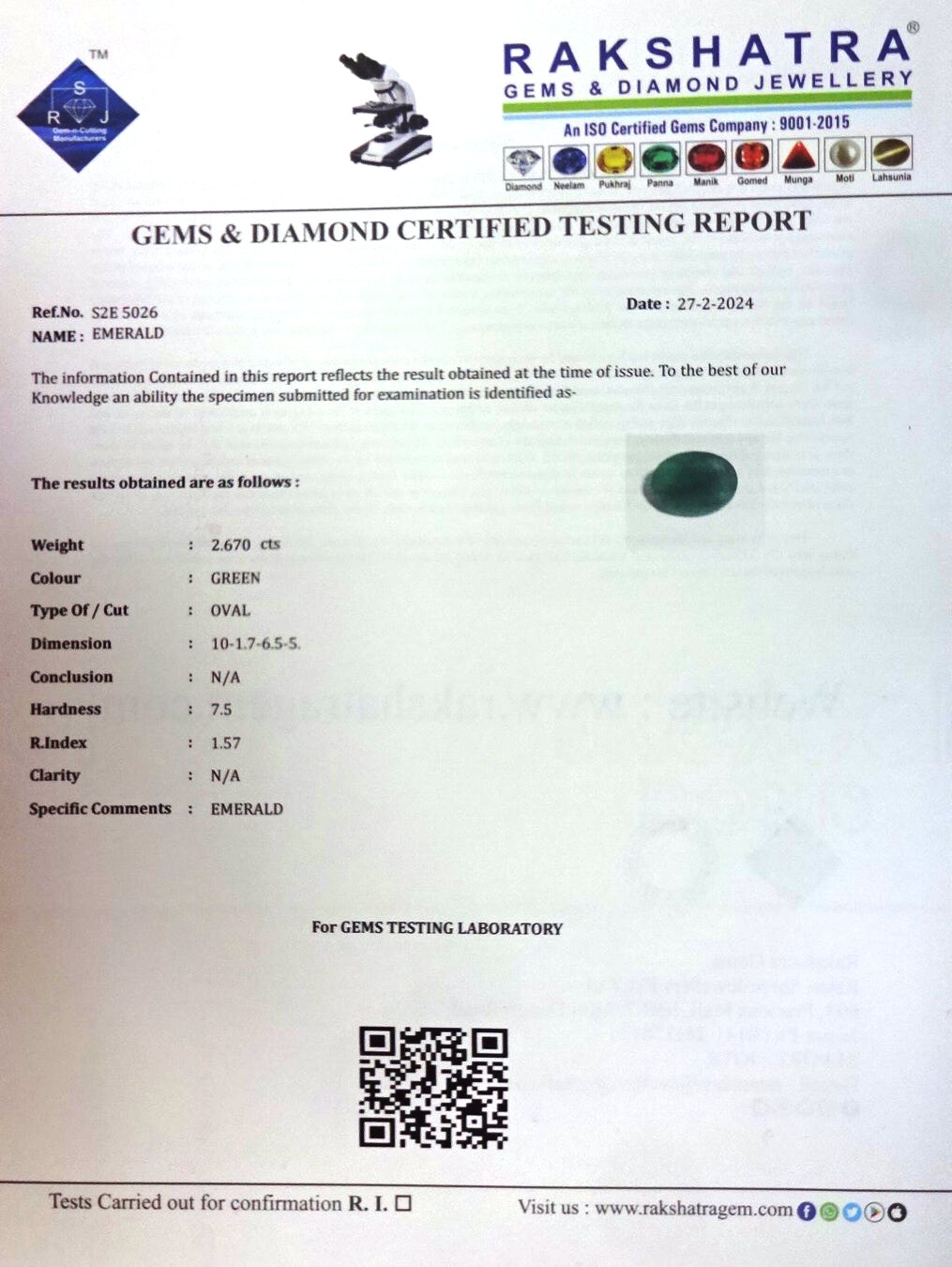 | WEIGHT: | 2.67 CTS |