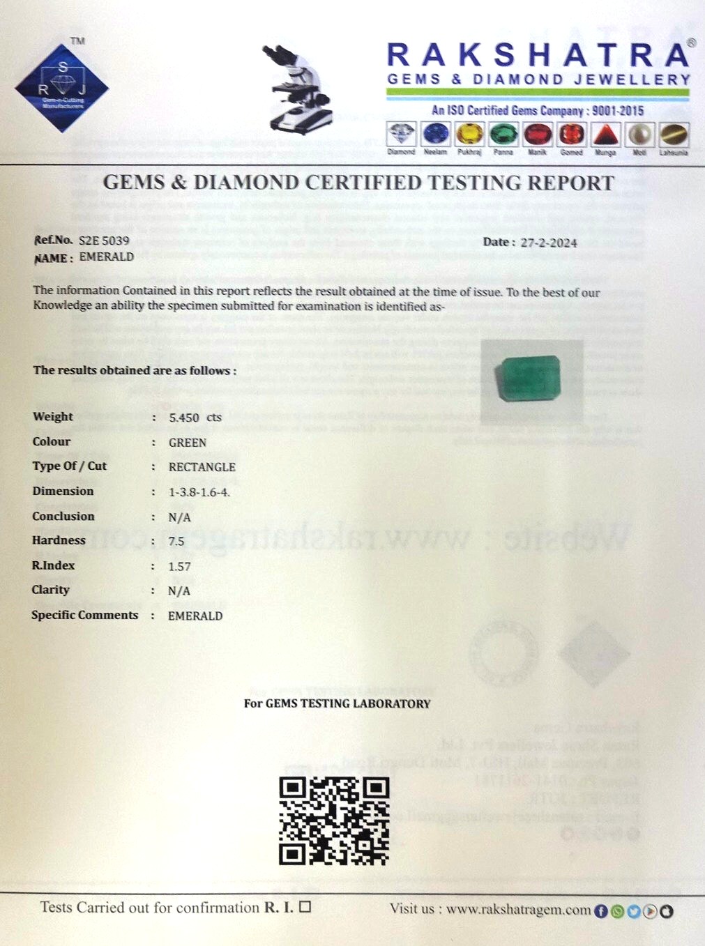 | WEIGHT: | 5.45 CTS |