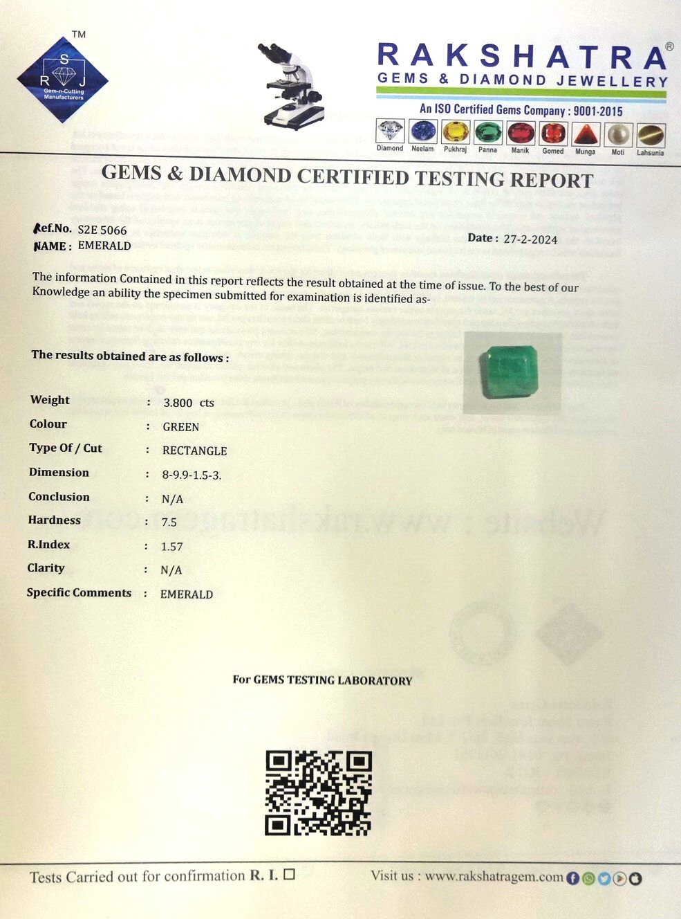 | WEIGHT: | 3.80 CTS |