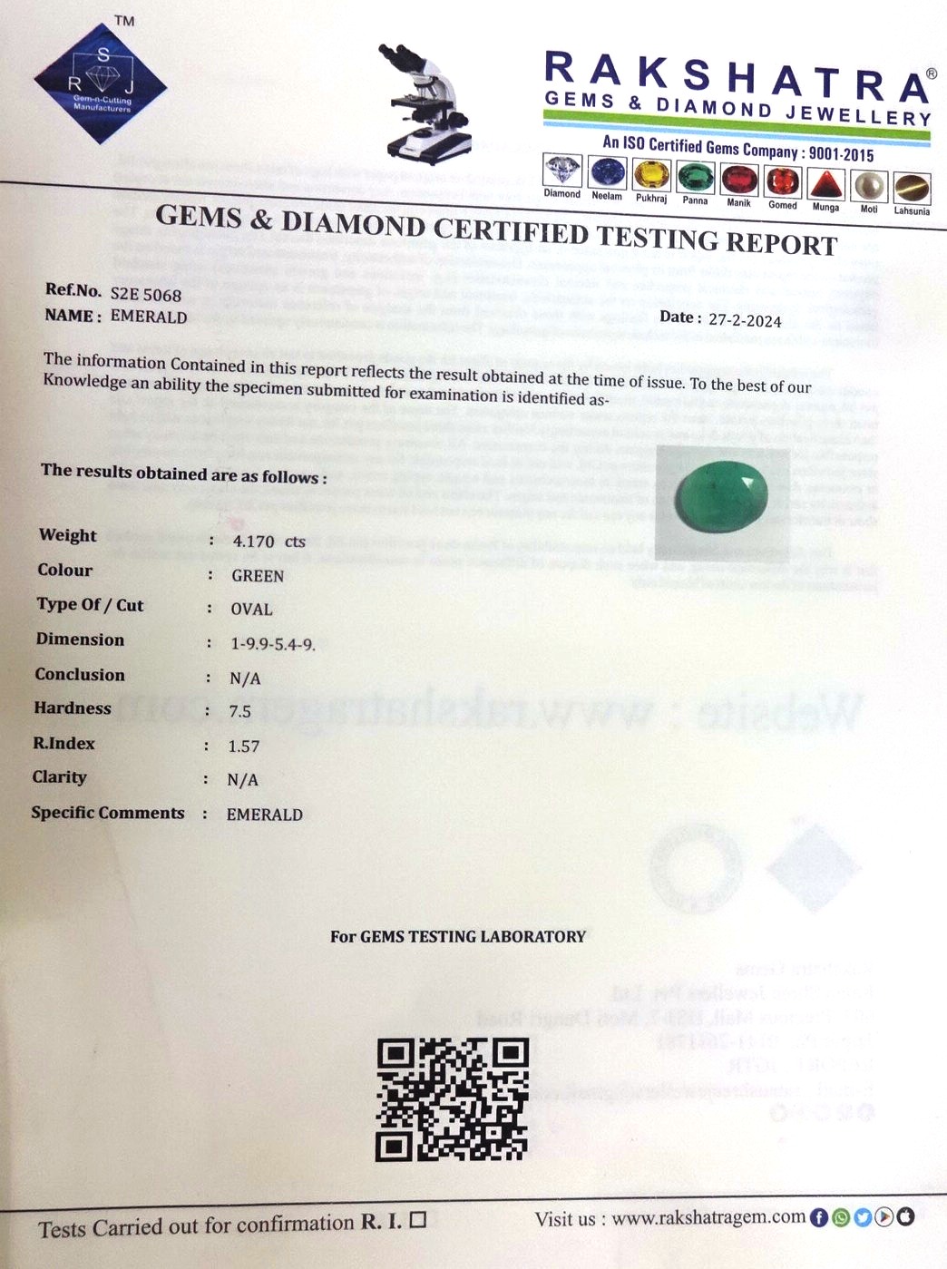 | WEIGHT: | 4.17 CTS |