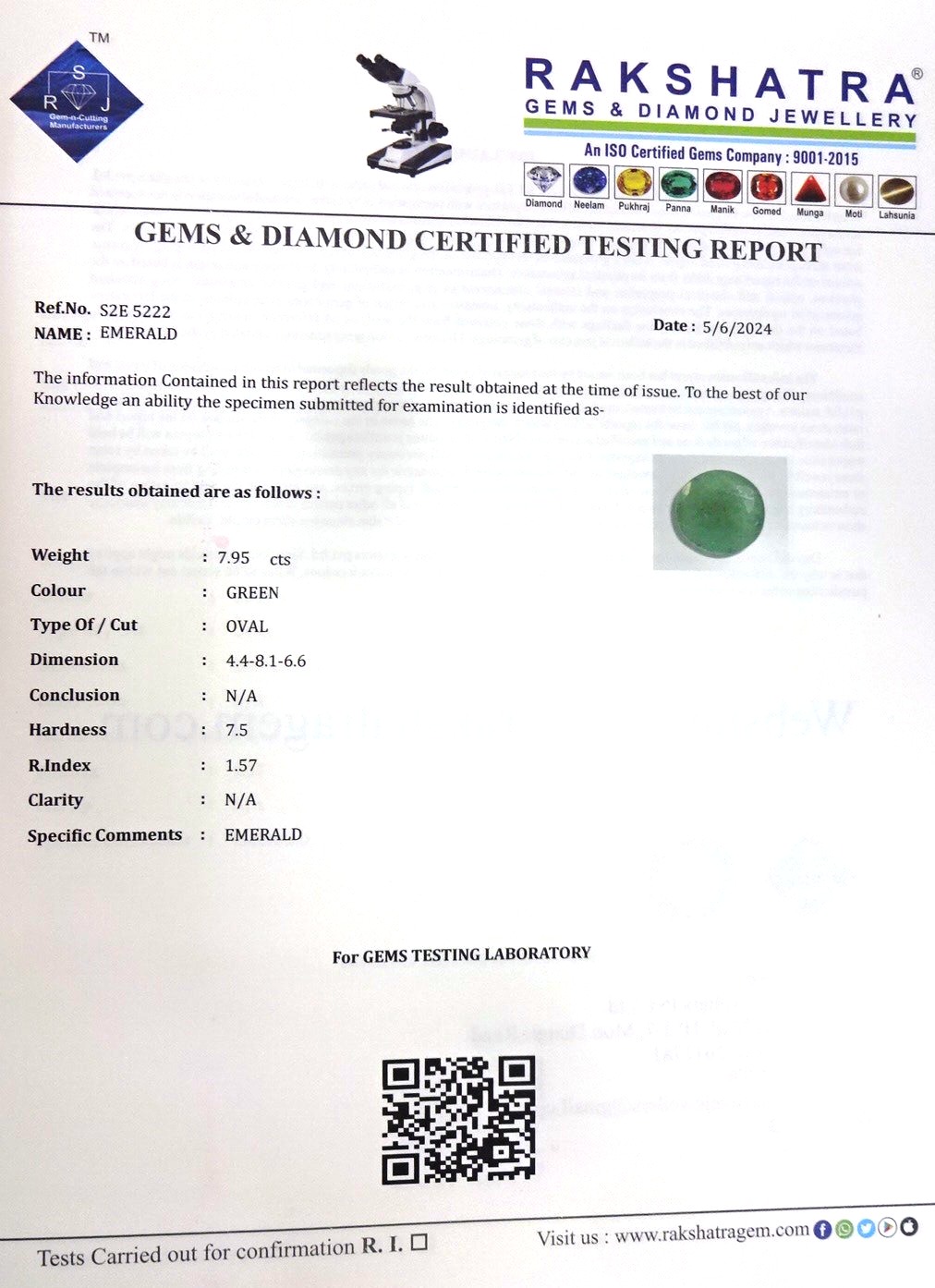 | WEIGHT: | 7.95 CTS |