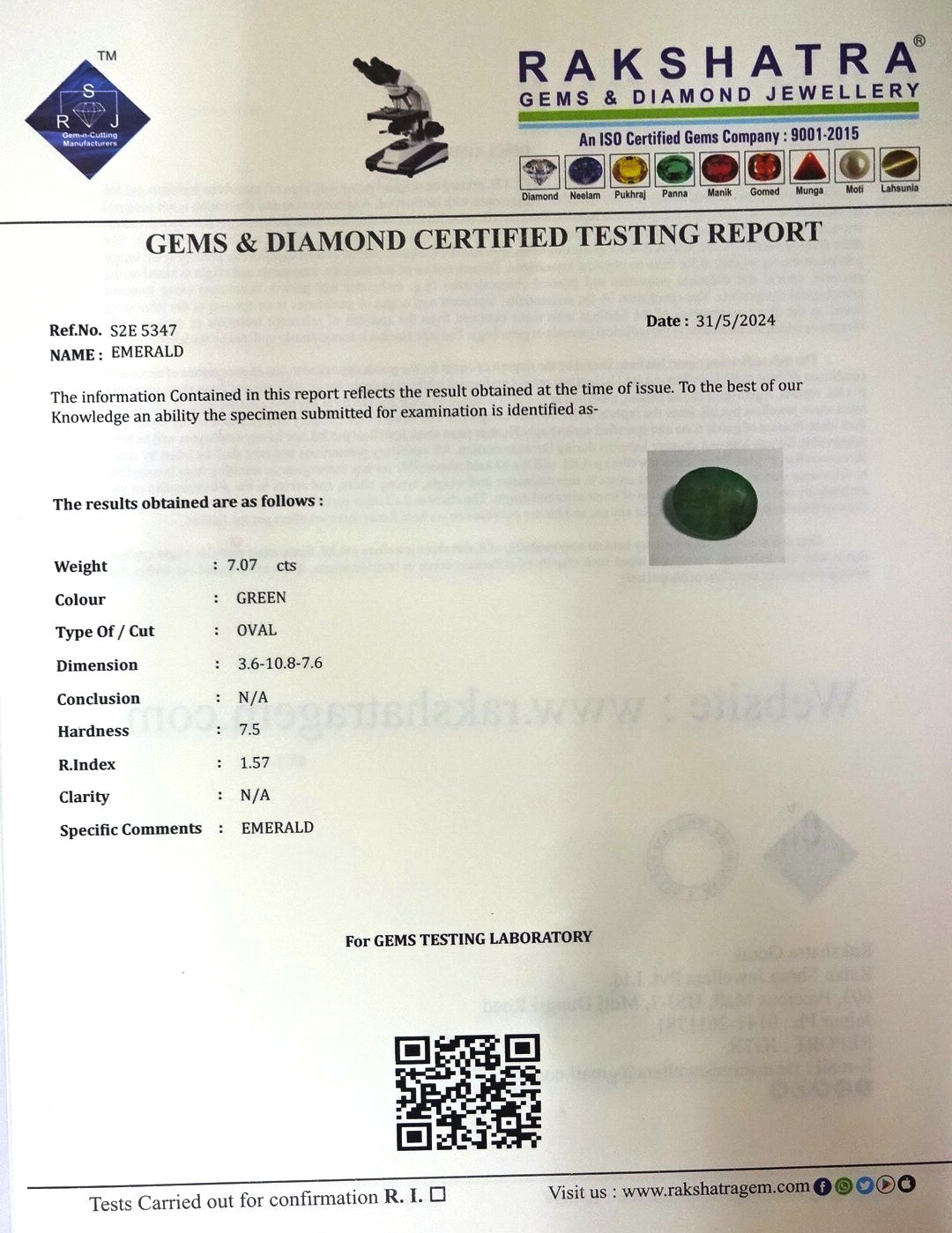 | WEIGHT: | 7.07 CTS |