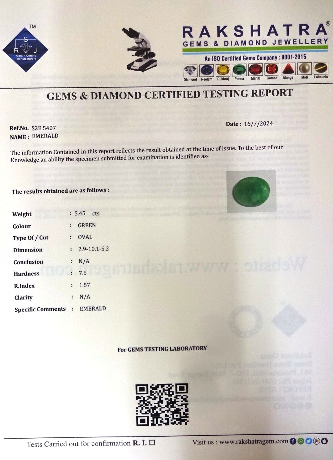 | WEIGHT: | 5.45 CTS  |