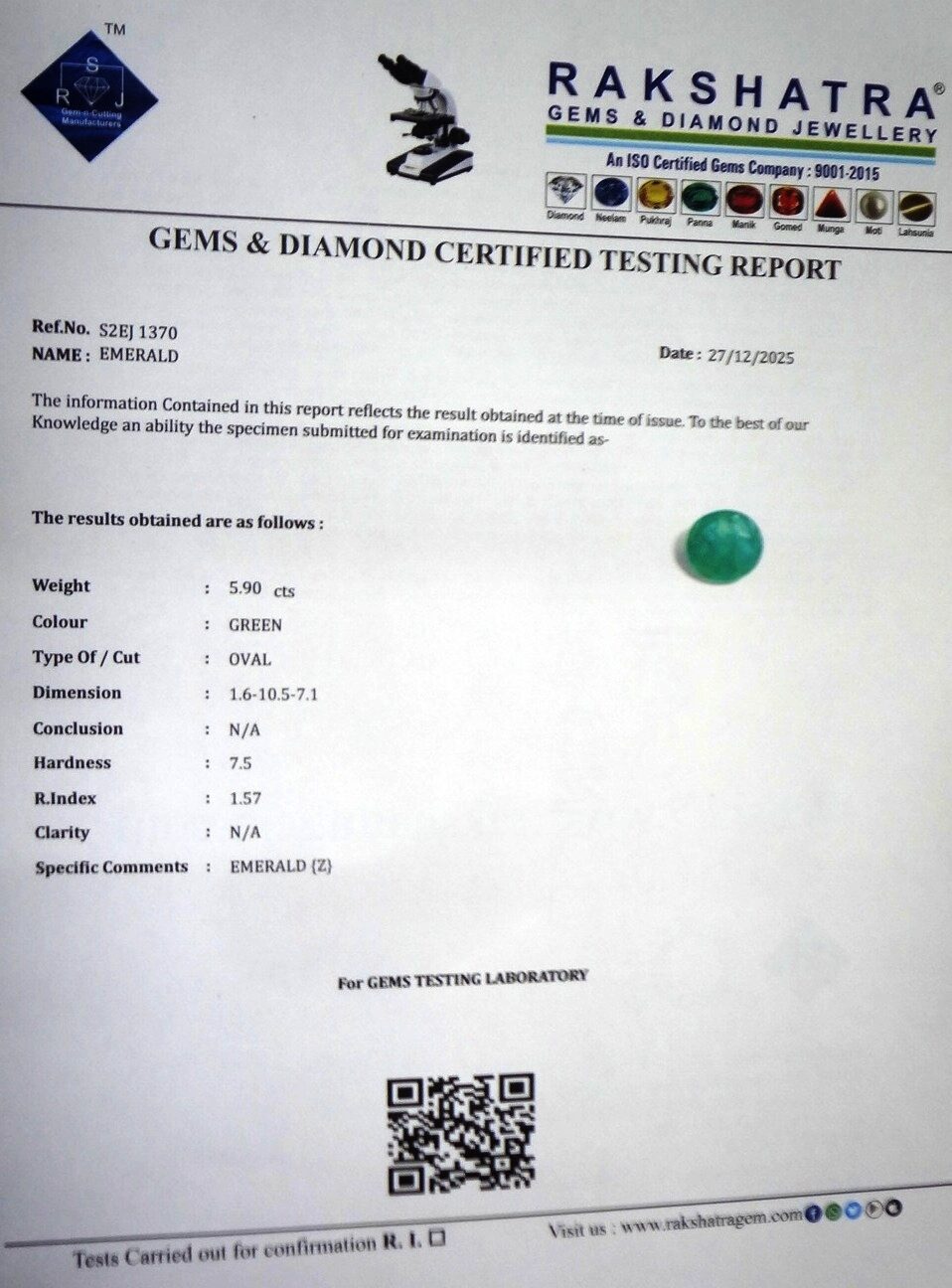 | SPECIFIC COMMENTS: | EMERALD { Z } |