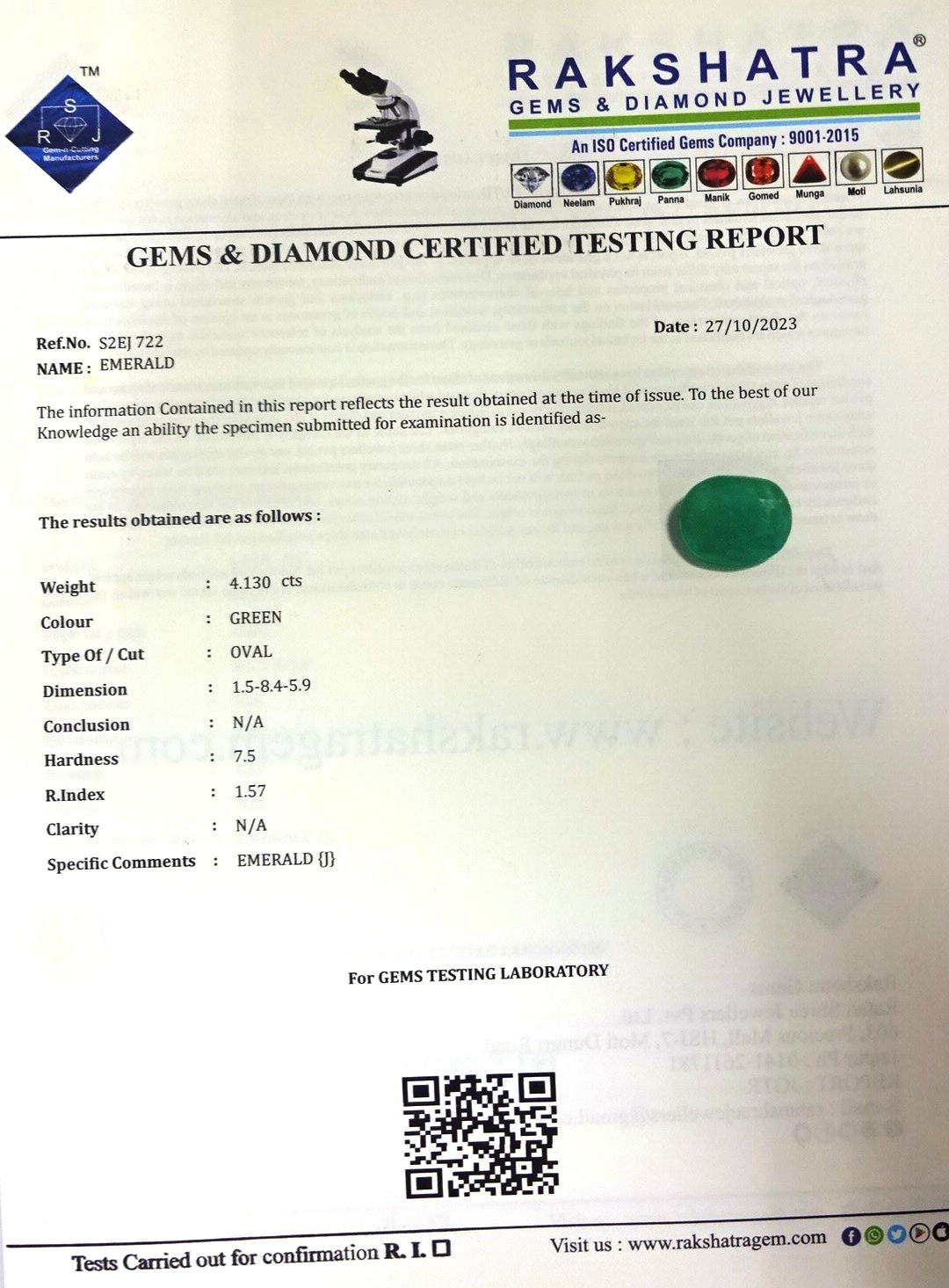 | SPECIFIC COMMENTS: | EMERALD {J} |
