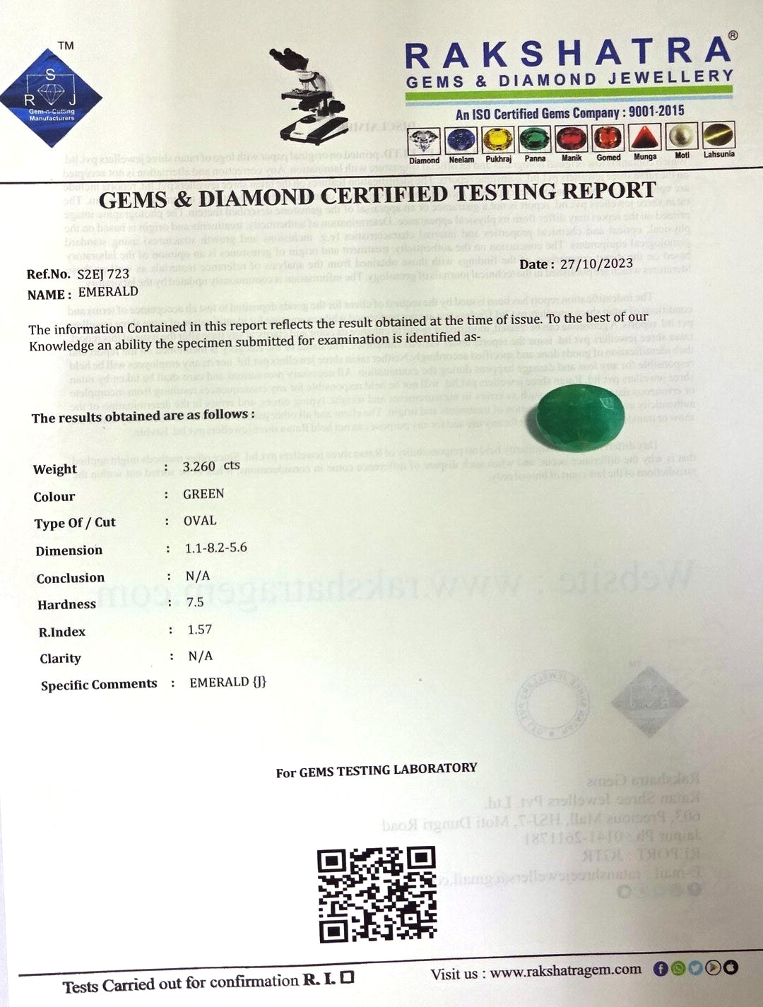 | WEIGHT: | 3.26 CTS |