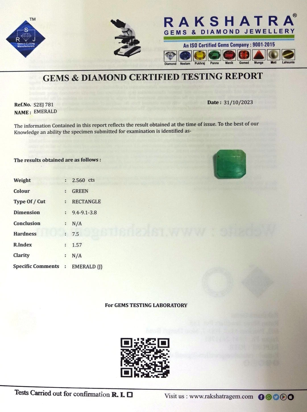 | WEIGHT: | 2.56 CTS |