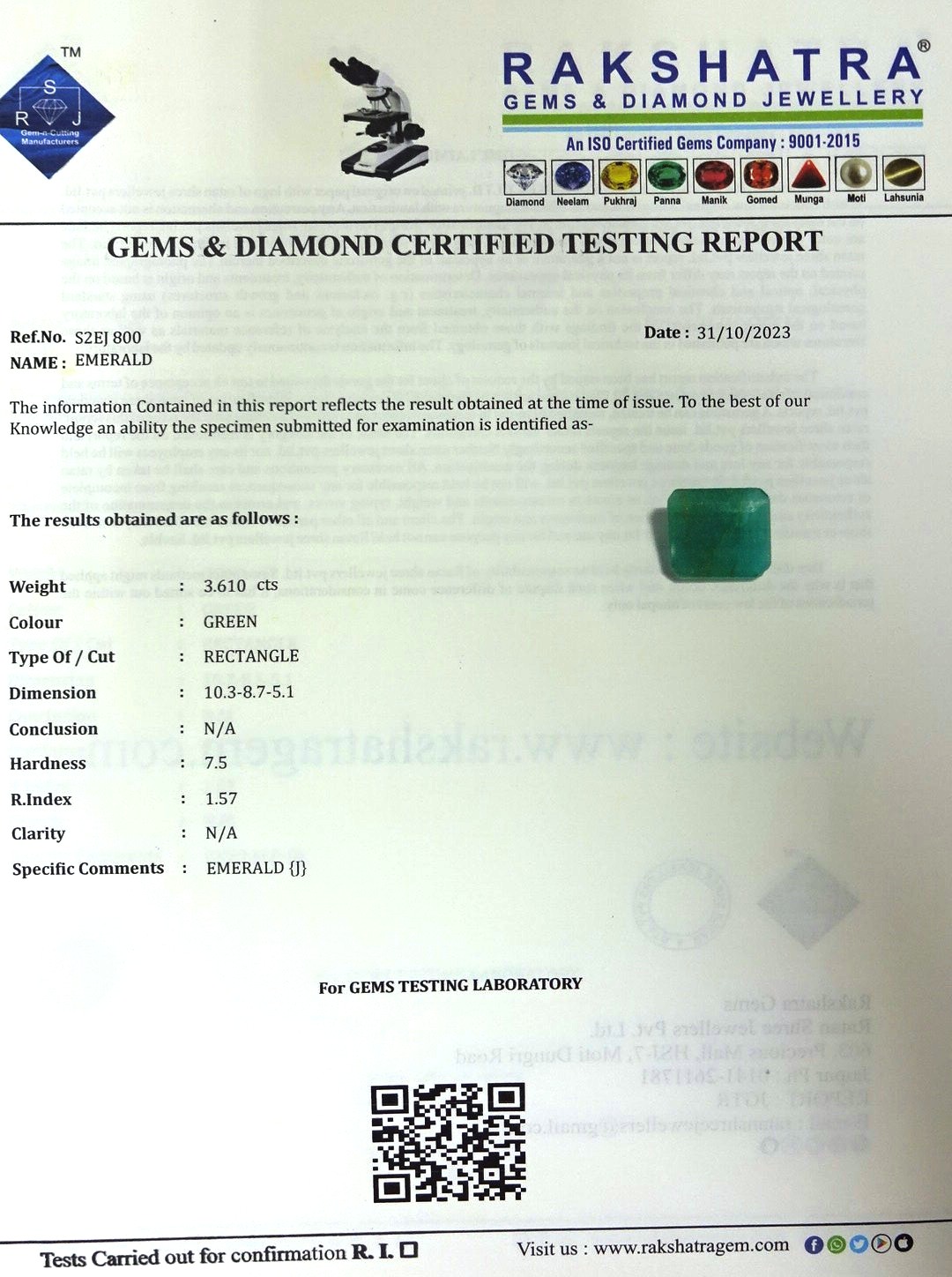 | SPECIFIC COMMENTS: | EMERALD { J } |