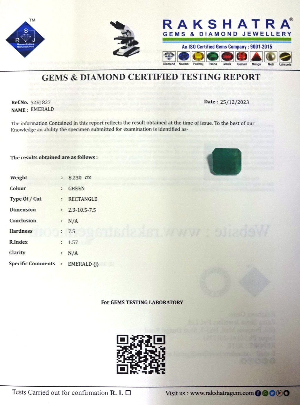 | WEIGHT: | 8.23 CTS |