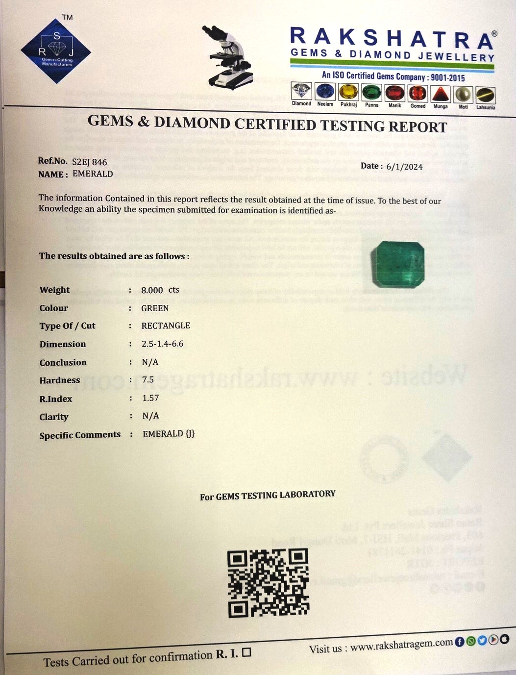 | SPECIFIC COMMENTS: | EMERALD {J} |