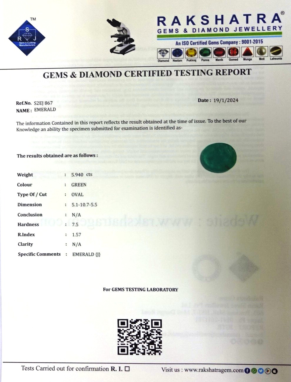 | WEIGHT: | 5.94 CTS |