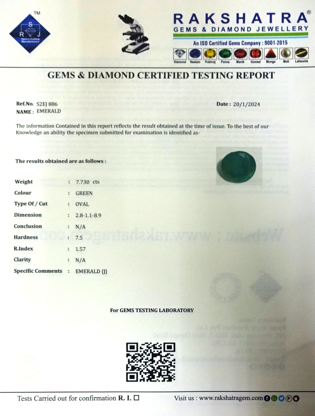 | WEIGHT: | 7.73 CTS |