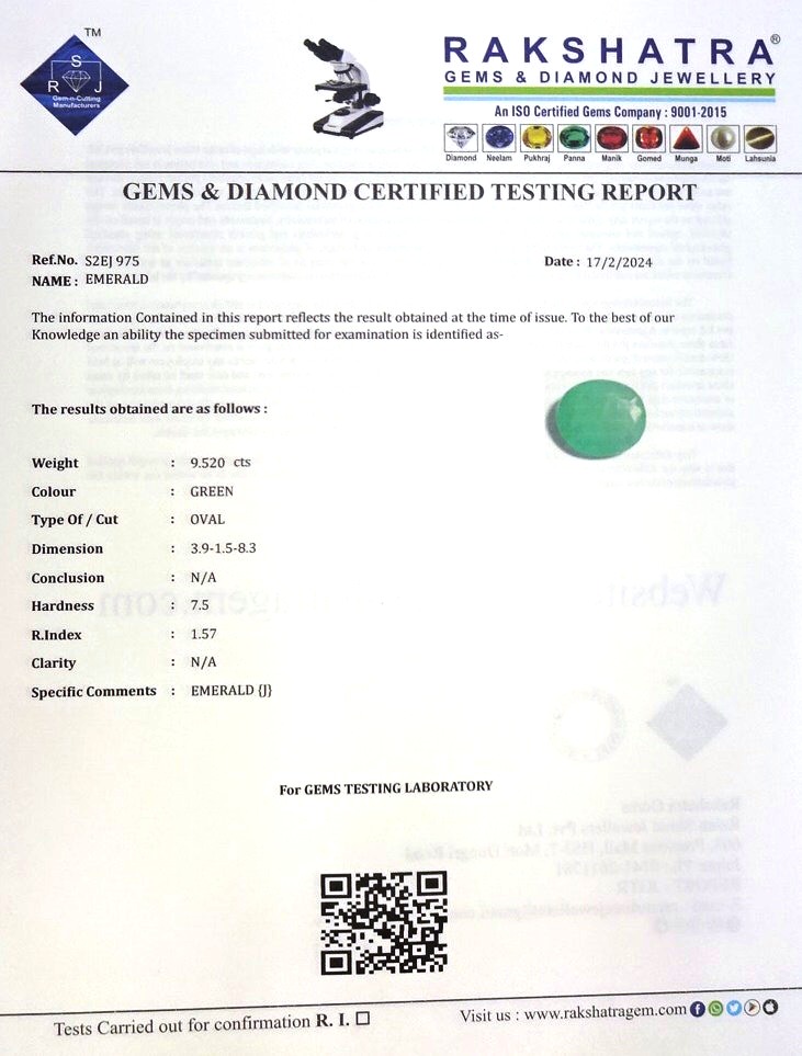 | SPECIFIC COMMENTS: | EMERALD {J} |