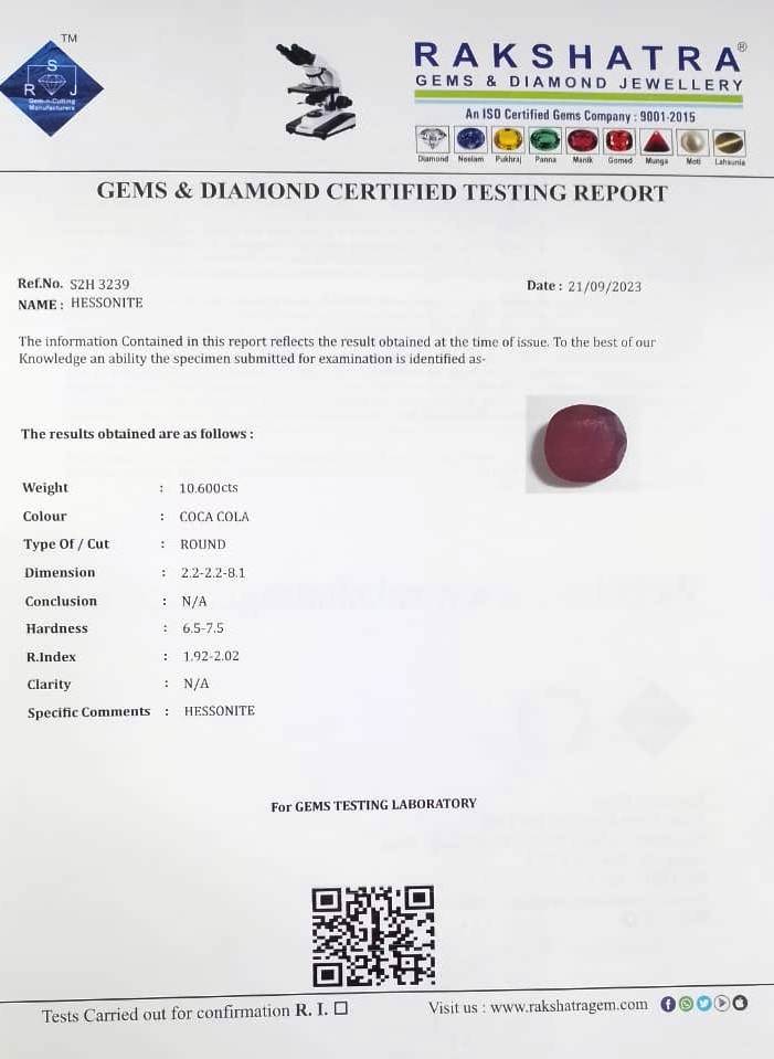| SPECIFIC COMMENTS: | HESSONITE |