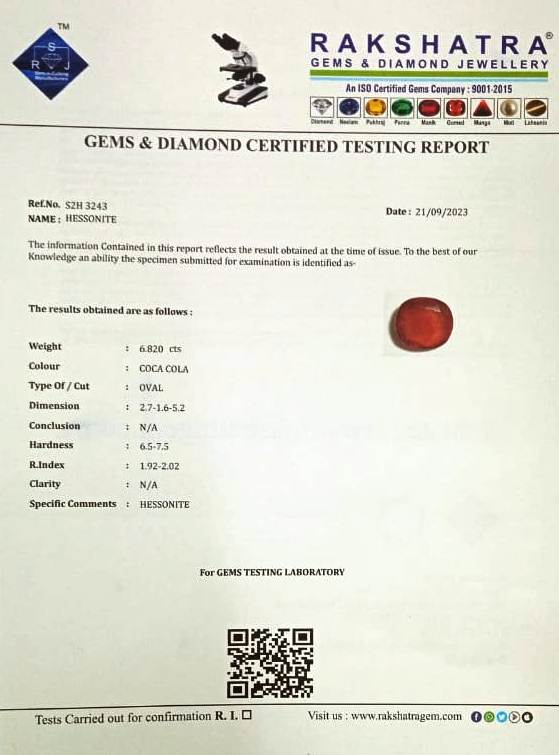 | SPECIFIC COMMENTS: | HESSONITE |