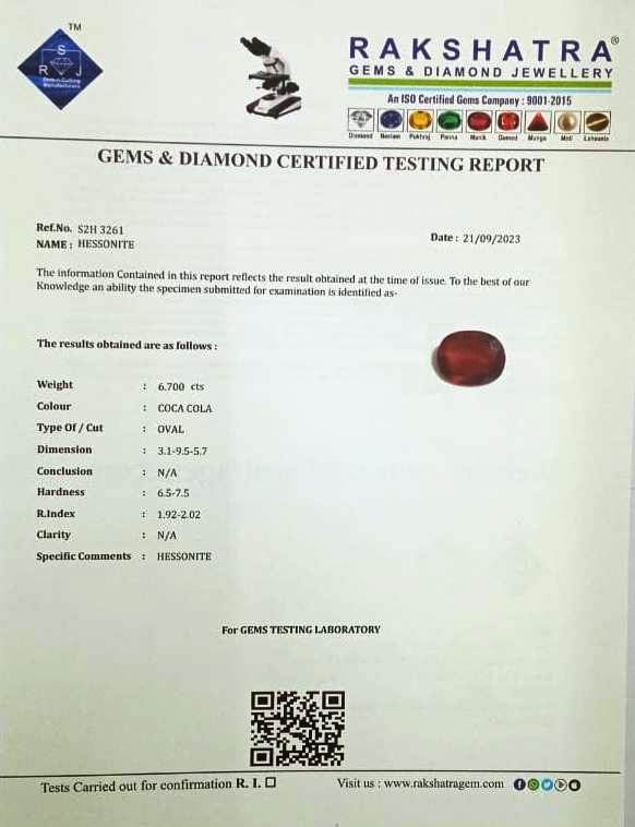 | SPECIFIC COMMENTS: | HESSONITE |