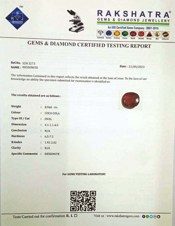 | SPECIFIC COMMENTS: | HESSONITE |
