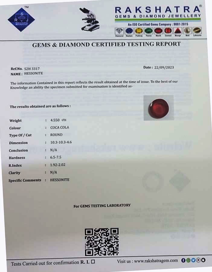 | SPECIFIC COMMENTS: | HESSONITE |