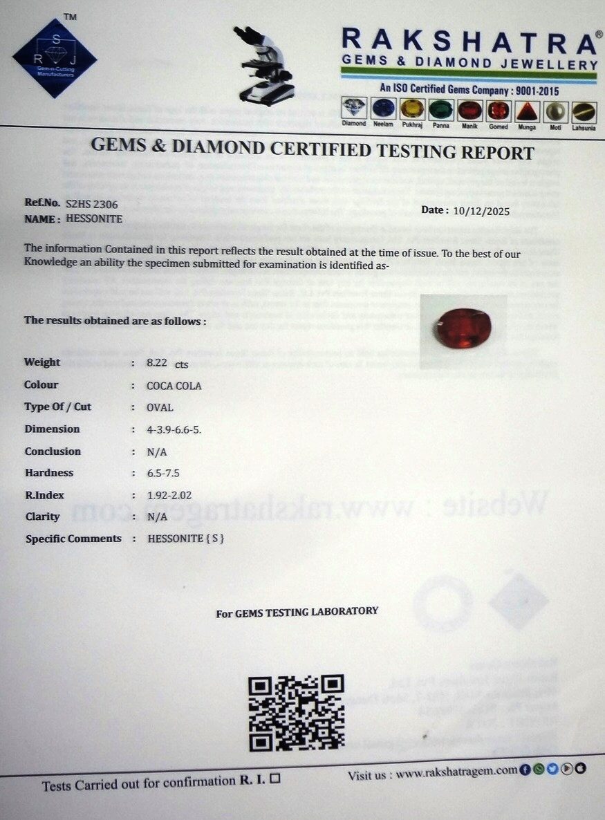 | SPECIFIC COMMENTS: | HESSONITE {S} |