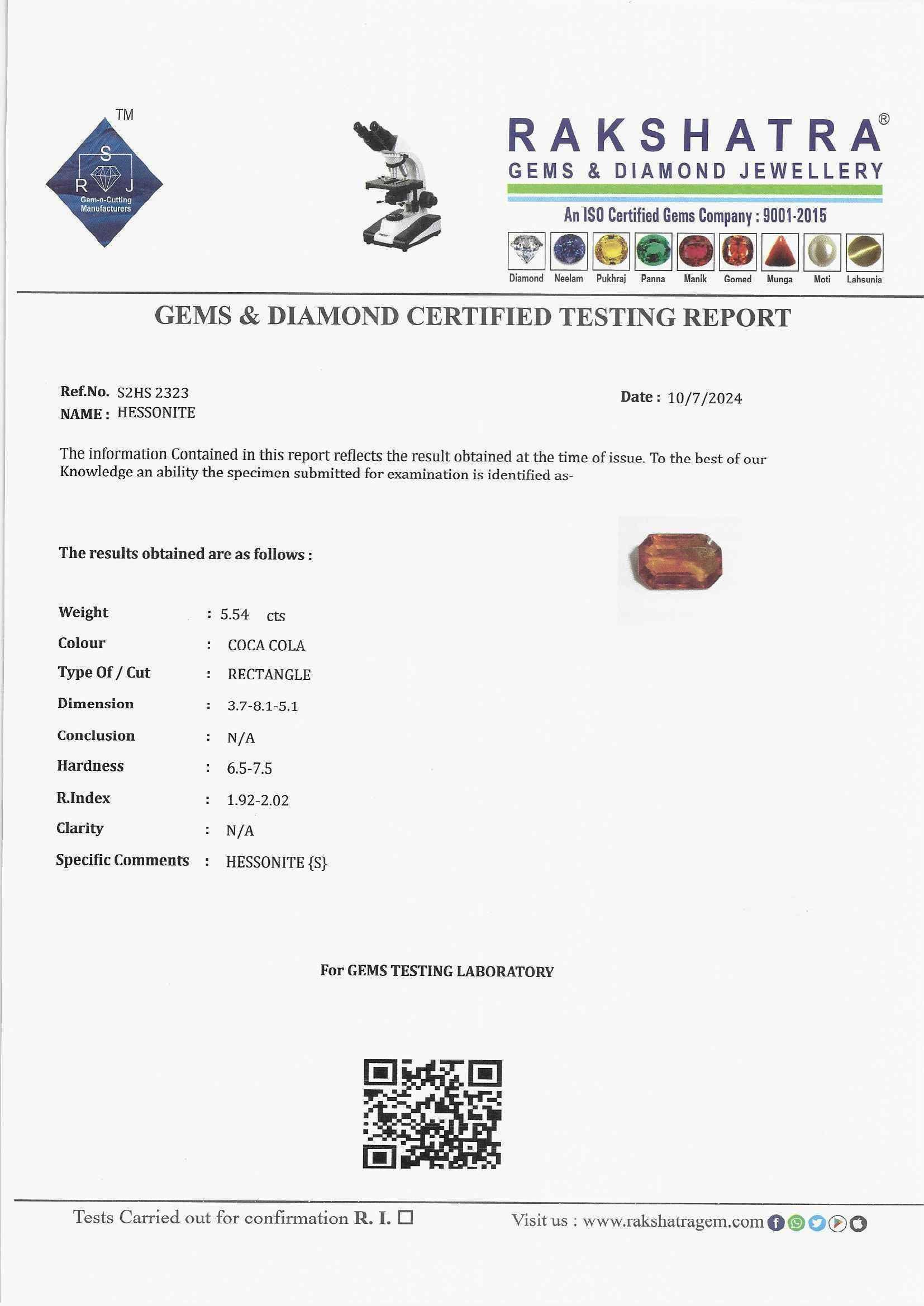 | SPECIFIC COMMENTS: | HESSONITE {S} |