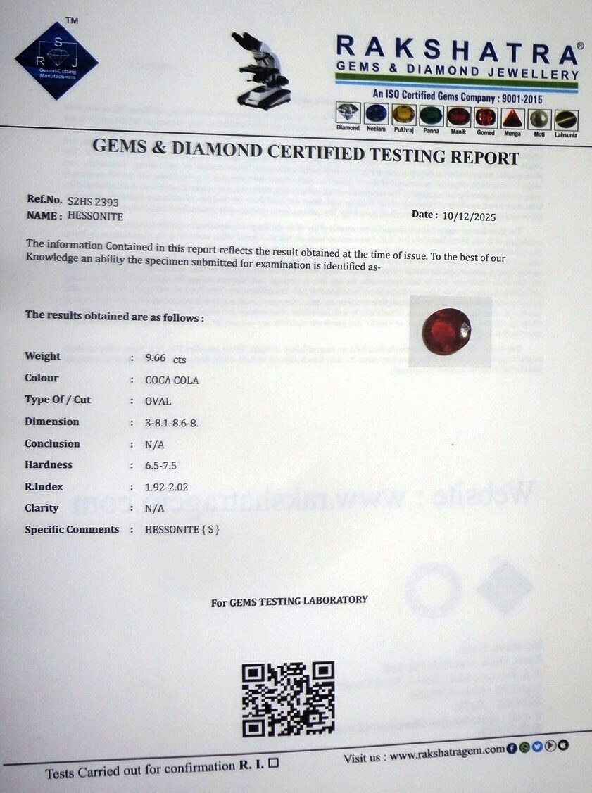 | SPECIFIC COMMENTS: | HESSONITE {S} |