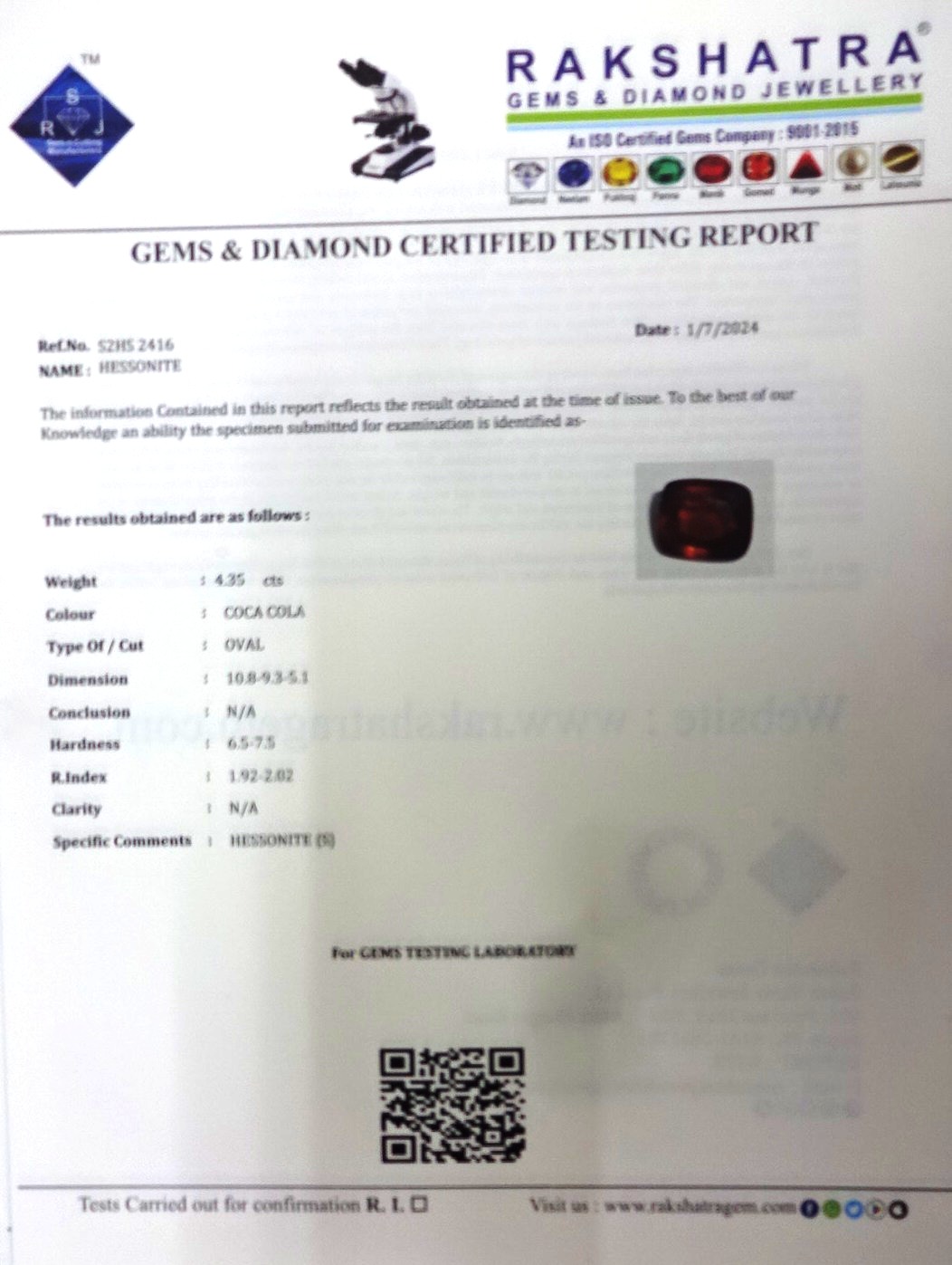 | SPECIFIC COMMENTS: | HESSONITE {S} |