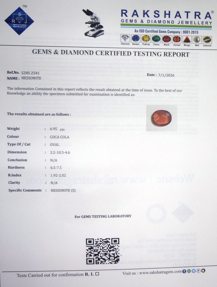 | SPECIFIC COMMENTS: | HESSONITE { S } |