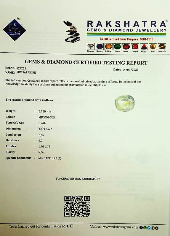 | SPECIFIC COMMENTS: | MIX SAPPHIRE { S } |