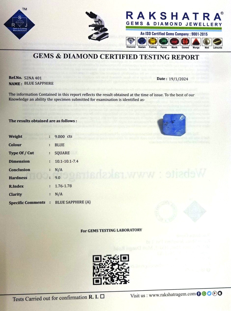 | SPECIFIC COMMENTS: | BLUE SAPPHIRE { A } |