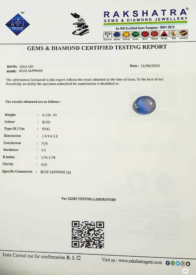 | SPECIFIC COMMENTS: | BLUE SAPPHIRE {A} |