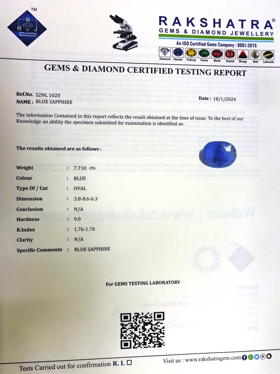 | SPECIFIC COMMENTS: | BLUE SAPPHIRE |