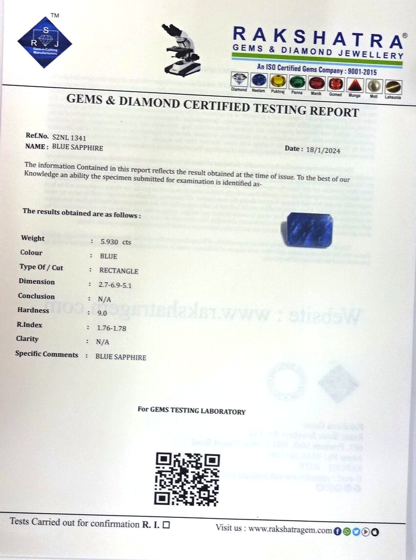 | SPECIFIC COMMENTS: | BLUE SAPPHIRE |