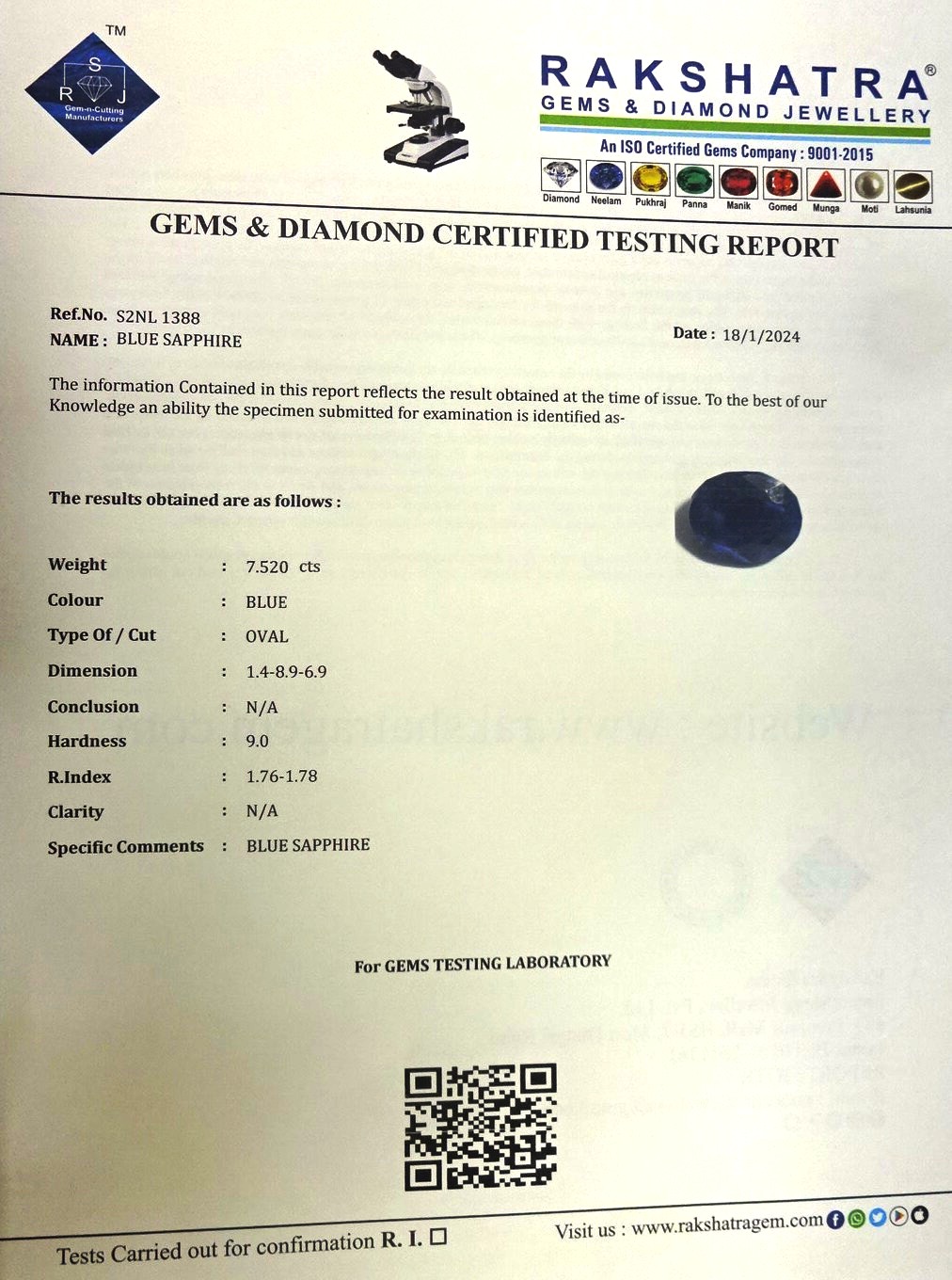 | SPECIFIC COMMENTS: | BLUE SAPPHIRE |