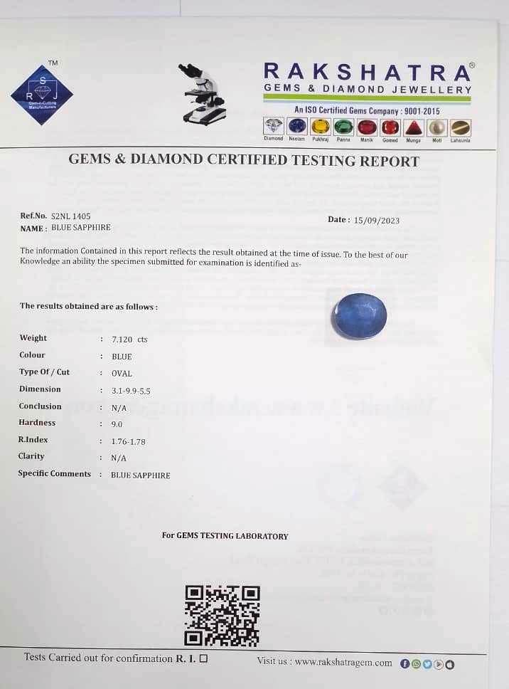 | SPECIFIC COMMENTS: | BLUE SAPPHIRE |