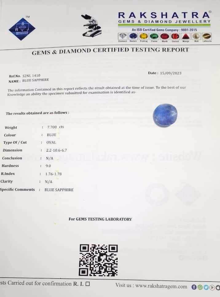 | SPECIFIC COMMENTS: | BLUE SAPPHIRE |