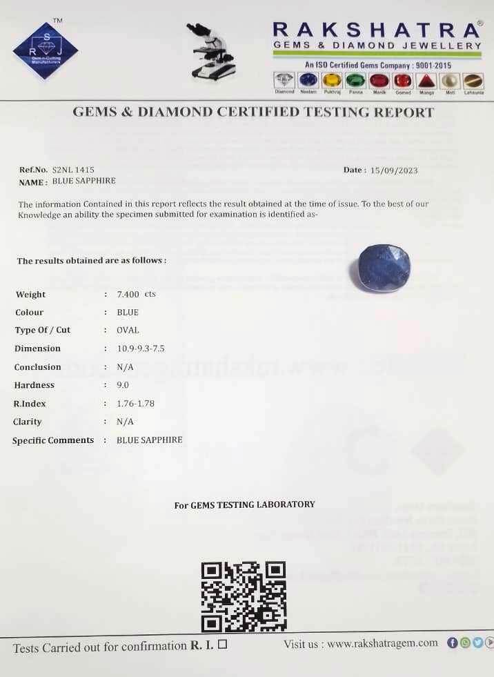 | SPECIFIC COMMENTS: | BLUE SAPPHIRE |