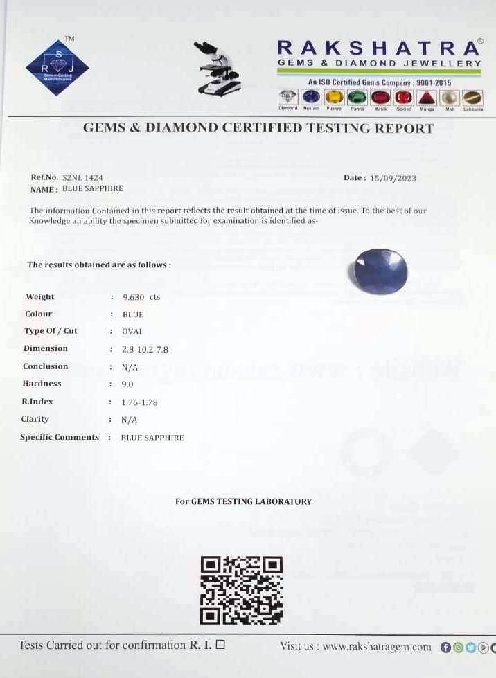 | SPECIFIC COMMENTS: | BLUE SAPPHIRE |