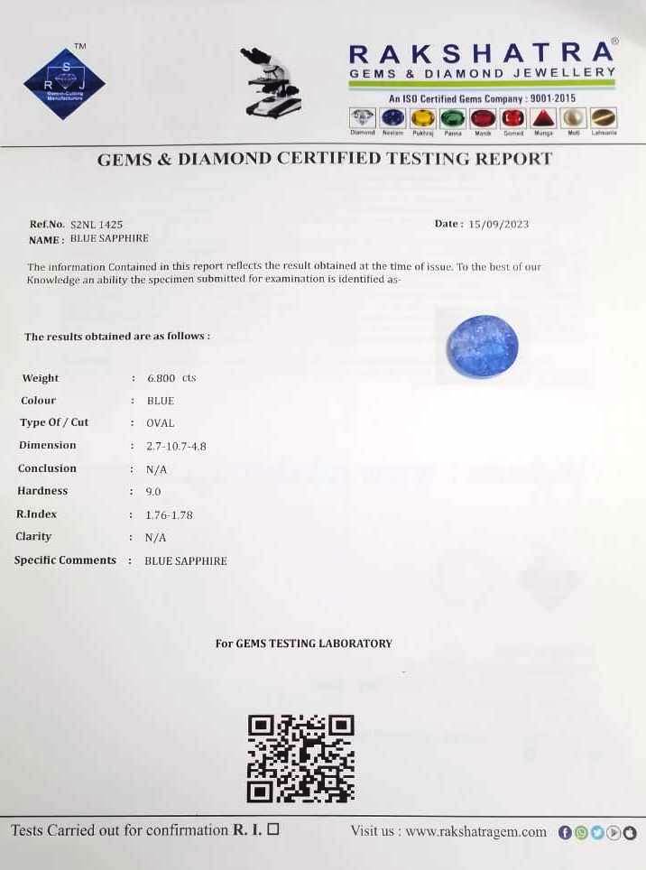 | SPECIFIC COMMENTS: | BLUE SAPPHIRE |